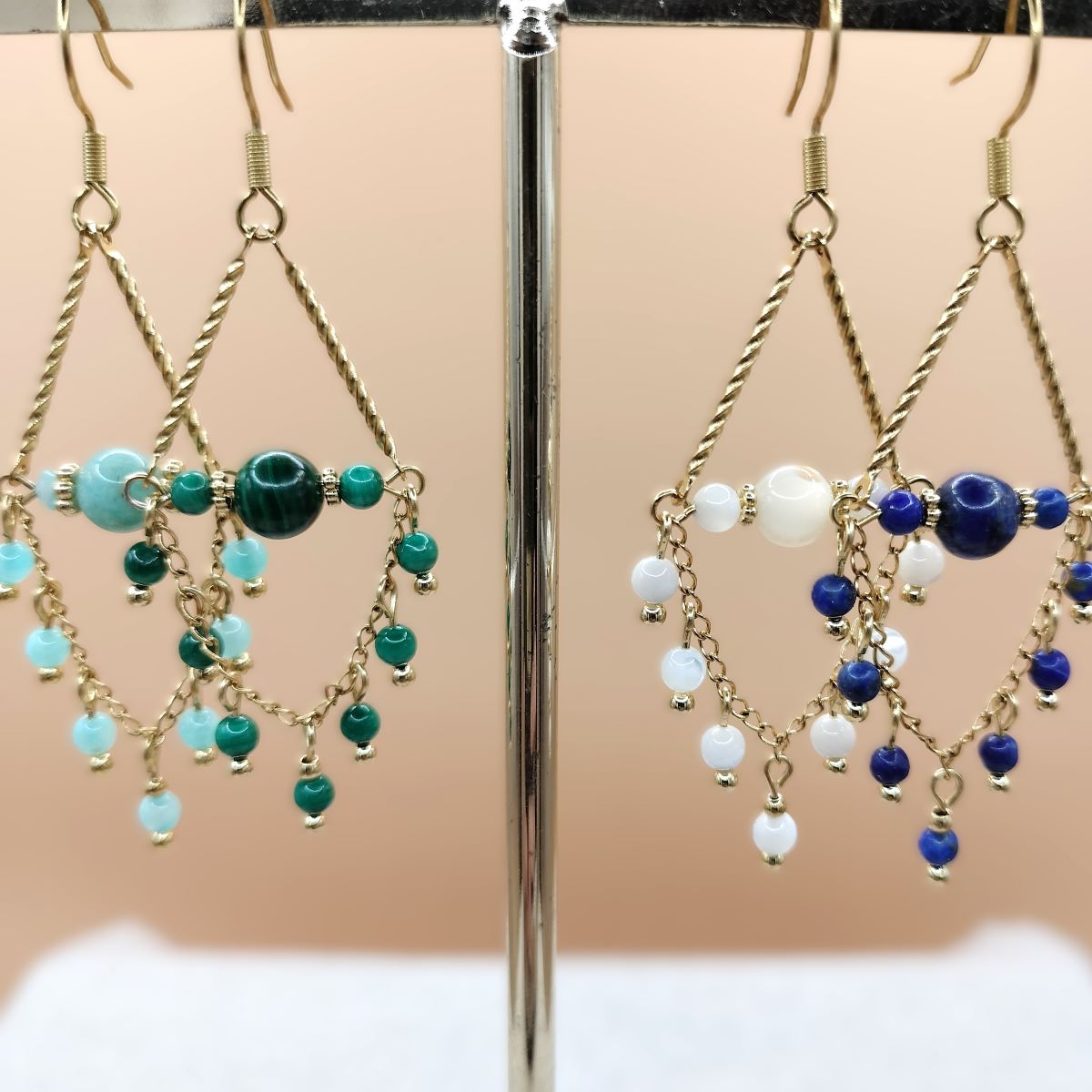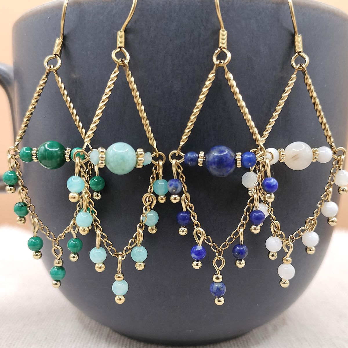 J’ai imaginé ces boucles d’Oreilles en Pierre/Nacre pendant l’été 2024. Le succès de ces modèles a été tel que nous avons décidé de l’intégrer de manière pérenne dans notre collection Perle Fil Ciseaux. Je lui ai fait sa place dans la catégorie : « Les Perles » de notre boutique en ligne. Comme tous nos bijoux, nous avons créé ce modèle et ces variations, dans notre atelier situé au cœur du Pays de Brocéliande, en Bretagne. La 1ère paire était en Amazonite, puis nous avons décidé de décliner ce modèle avec d’autres types de pierre naturelle et même du coquillage (le petit dernier).