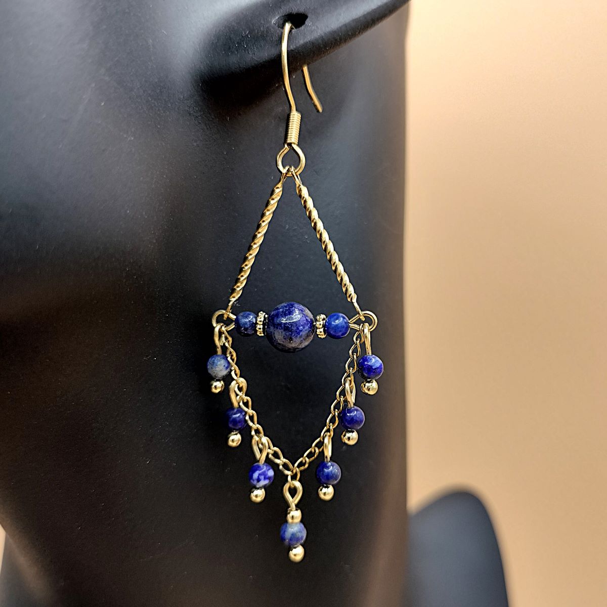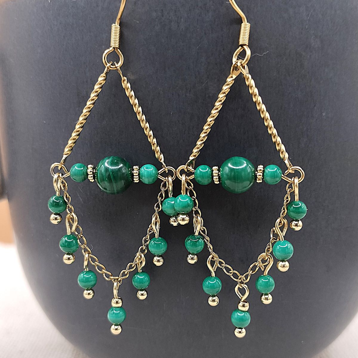 Les boucles d’oreilles en pierre naturelle se composent toutes de : chaînes, tiges, connecteurs et crochets d’oreilles en acier inoxydable doré. Les crochets d’oreilles sont hypoallergéniques et munis de 2 bouchons en silicone, ainsi, impossible de les perdre ! Celles-ci, possèdent toutes une perle ronde et lisse en pierre naturelle ou en coquillage de 6 mm de diamètre, 2 rondelles travaillées en acier inoxydable et 9 perles de 3 mm. Dans toutes les variations, les boucles d’oreilles mesurent 6,2 cm.