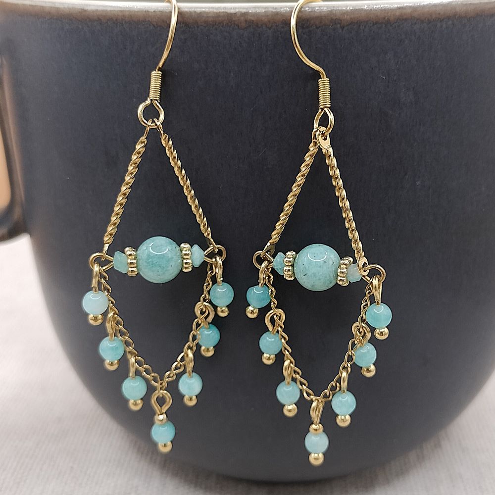 L’Amazonite est une pierre naturelle que l’on trouve principalement au Brésil, Pérou, en Afrique et aux Etats-Unis. Celle qui compose les boucles d’oreilles vient d’Afrique. C’est le fleuve Amazone qui lui a donné son nom.