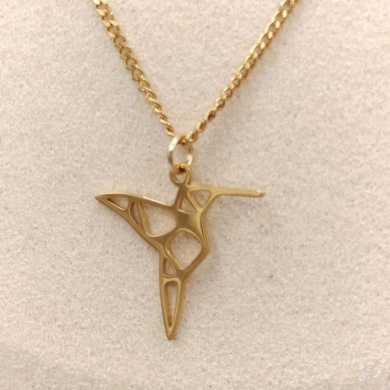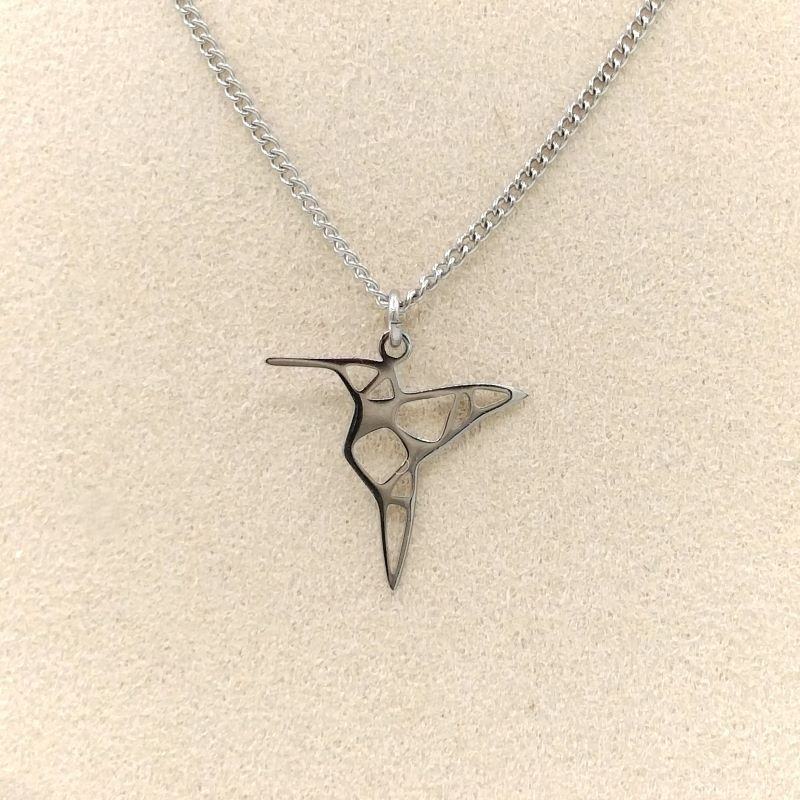 Le pendentif colibri délicatement ajouré façon origami, fait 18 mm de long et 18 de large, son épaisseur est de 0,8 mm. Il est en acier inoxydable sans galvanisation (brut) pour la version argentée, doré à l’or 18 carats pour la version dorée. Tout en finesse et en élégance il saura s’accorder avec l’ensemble de votre garde-robe en toutes saisons.