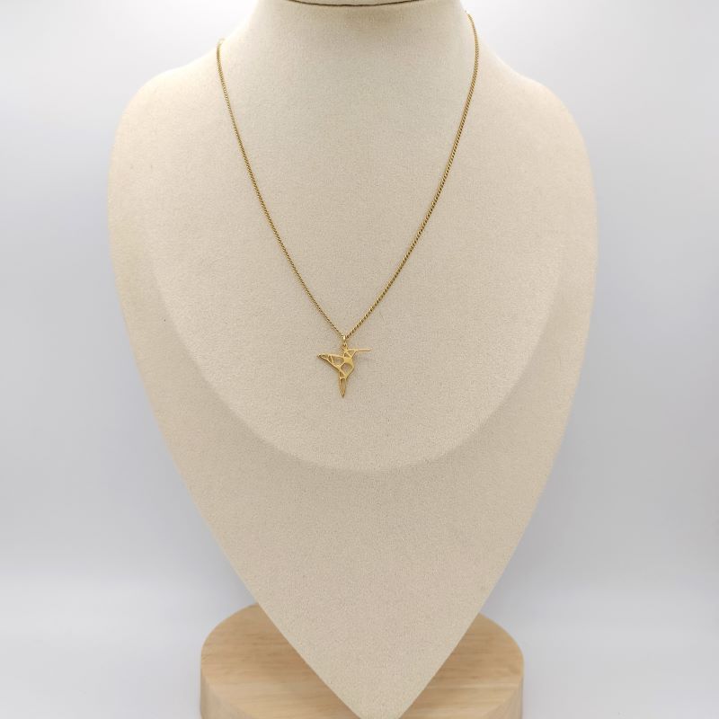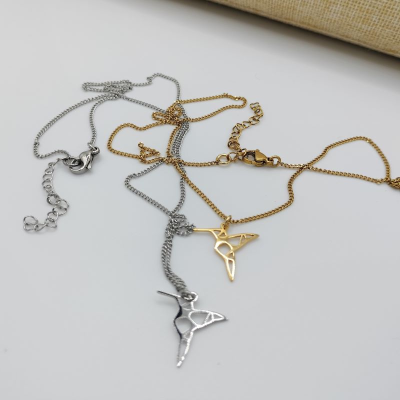 Ce collier avec un pendentif en forme de colibri façon origami est une nouveauté. En effet, ce collier avec son pendentif colibri fait partie de notre collection de bijoux artisanaux depuis le début de l’automne 2024. Compte tenu de son succès, nous avons décidé de l’intégrer dans notre catégorie « Les Incontournables ».