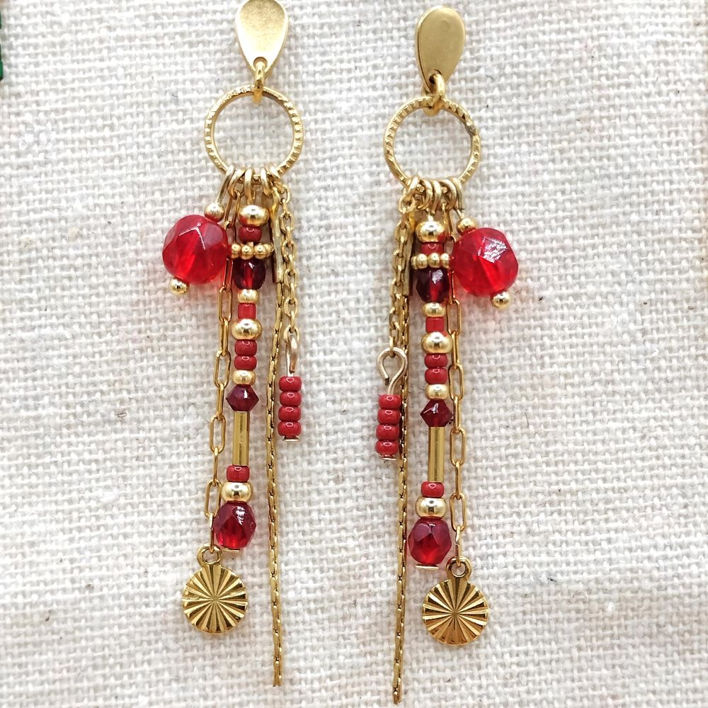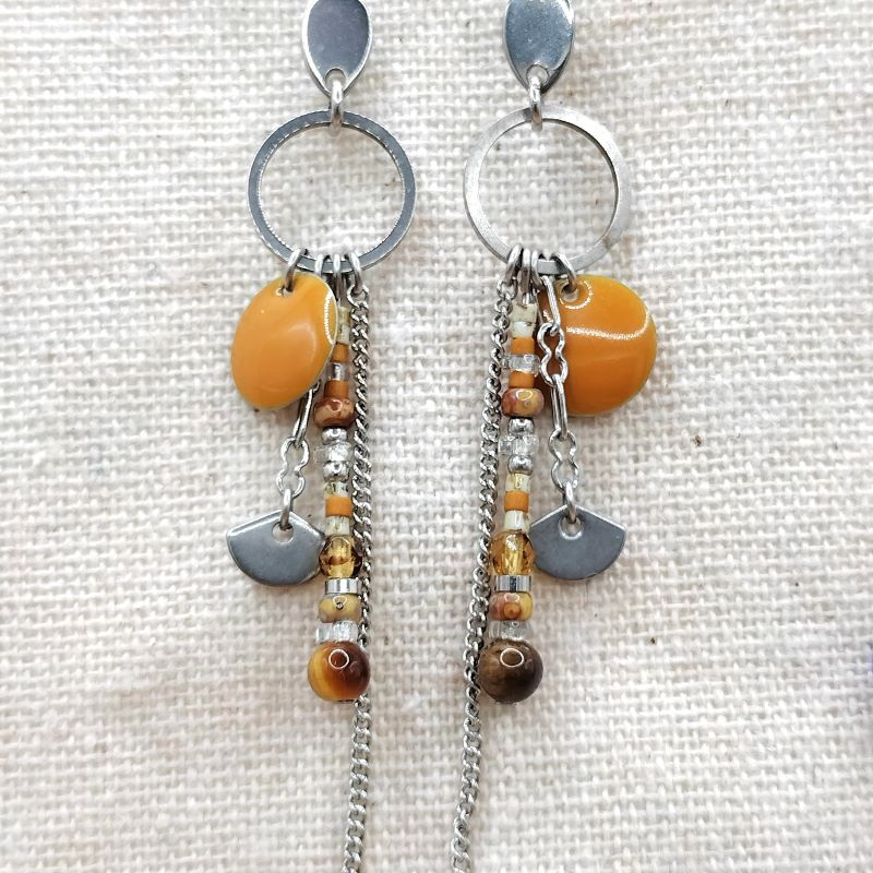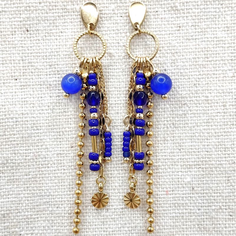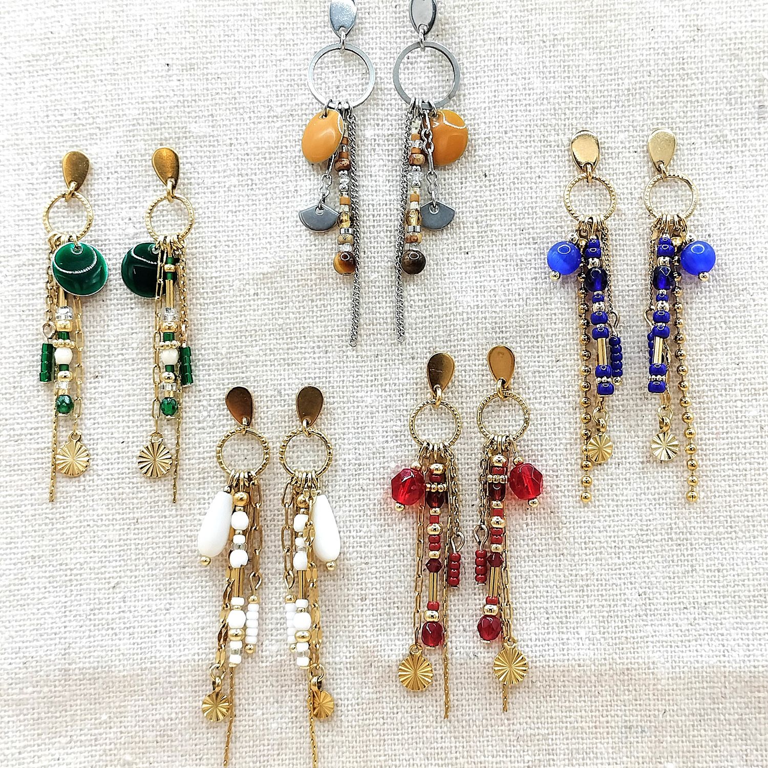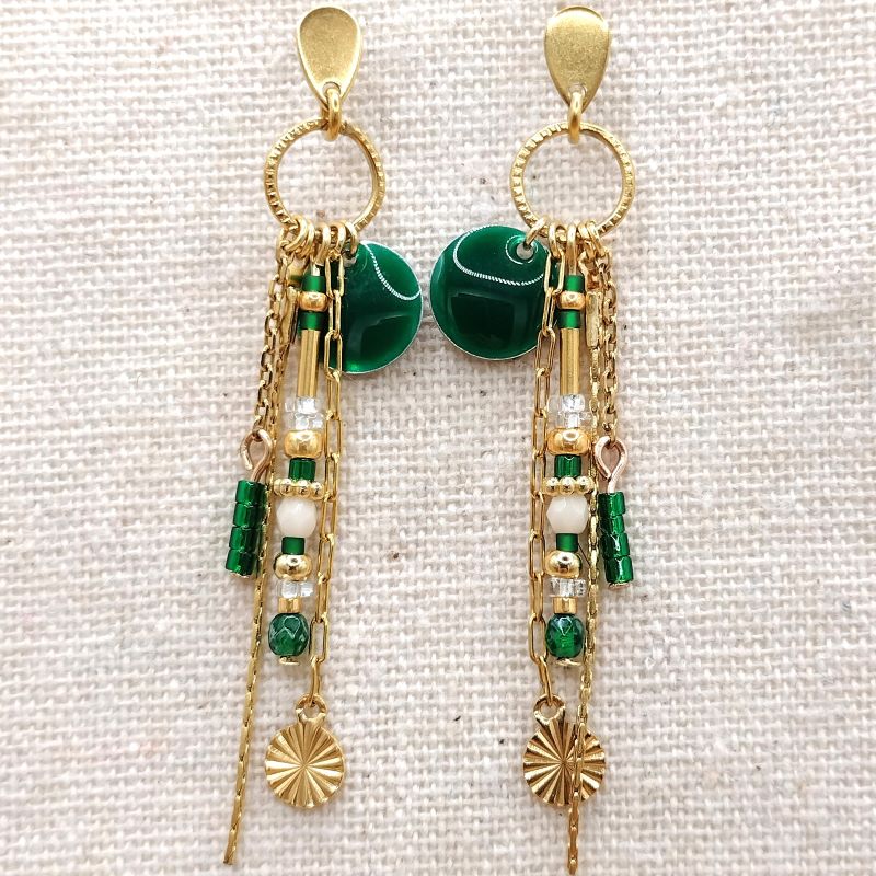 Les boucles d’oreilles Grigri ont vu le jour très tôt après la naissance de Perle Fil Ciseaux. Cet ensemble disparate de chaînes, de perles et de breloques de tailles et de formes variées, m’a fait penser à un « Grigri », c’est pourquoi, j’ai baptisé ce modèle ainsi. Depuis 2021, le succès des BO Grigri ne tarit pas, alors, nous avons décidé de l’intégrer de manière pérenne dans notre collection. Il fait désormais partie de la catégorie : « Les Perles » de notre boutique en ligne. Comme tous nos bijoux, nous avons imaginé et fabriqué les Boucles d’oreilles « Grigri » dans notre atelier situé au cœur du Pays de Brocéliande, en Bretagne.